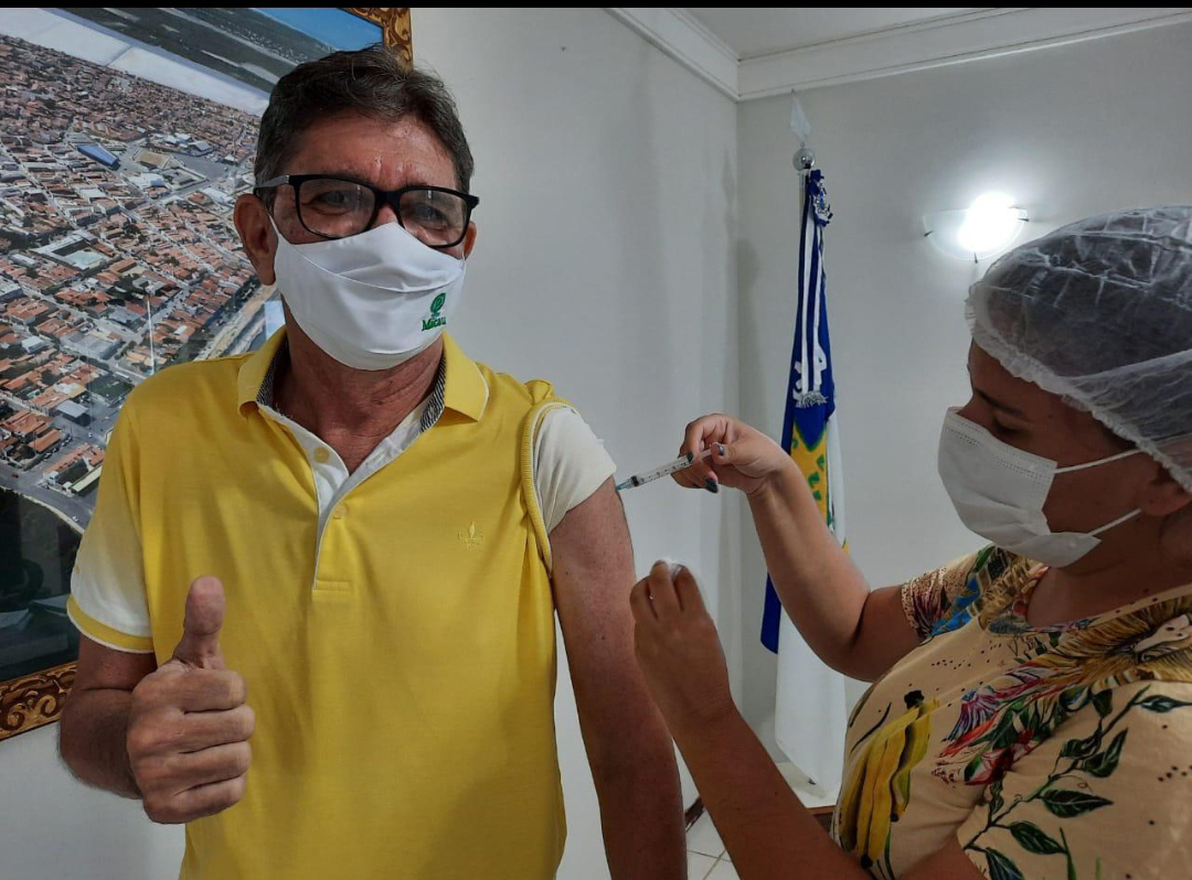 O Prefeito de Macau, o médico José Antônio Menezes, 66 anos, tomou nesta terça-feira, 27, a vacina contra a Covid-19. Ele recebeu a primeira dose da imunização no expediente normal do seu gabinete. Quem também recebeu a 1ª dose foi a primeira-dama e Secretária de Saúde do município, Terezinha Menezes. Como profissionais de saúde, o casal podia ter optado por receber o imunizante na primeira fase da vacinação.